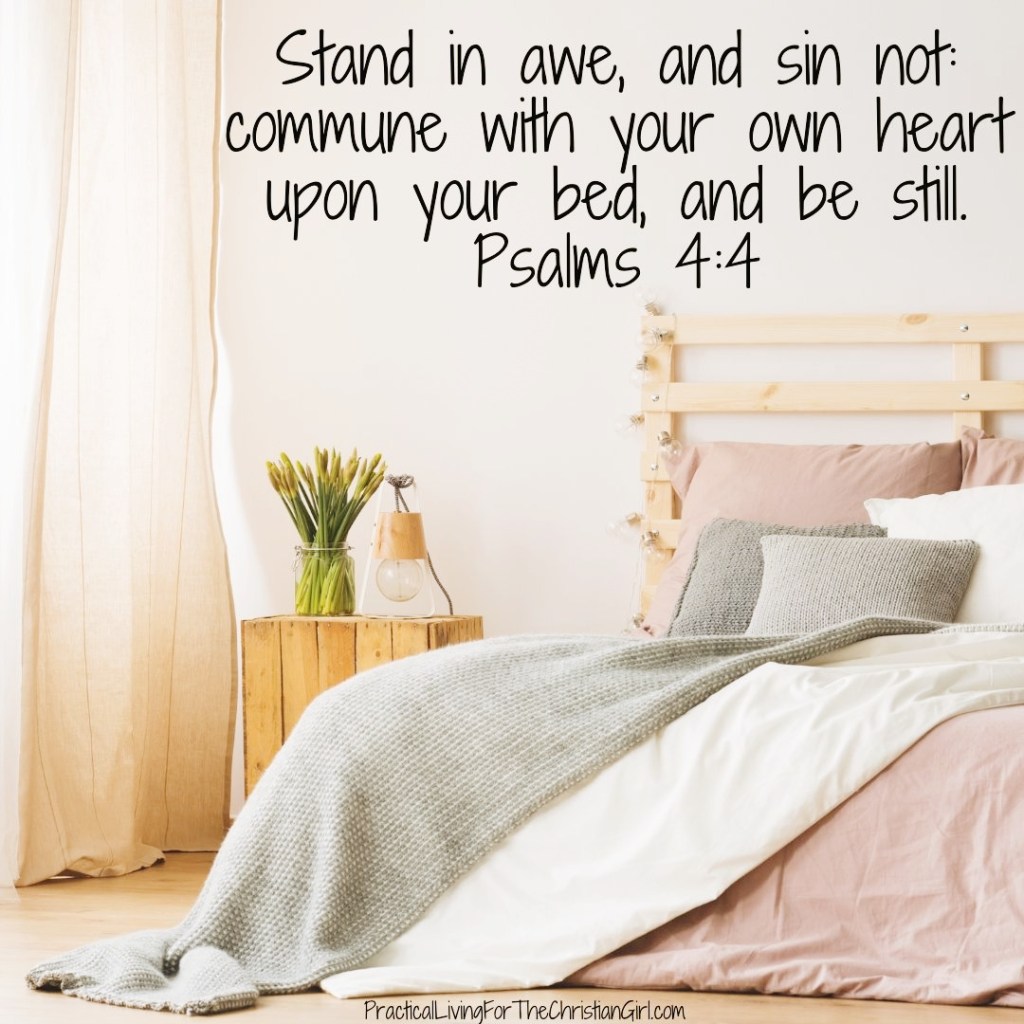 Psalm 4:4 Stand in awe, and sin not: commune with your own heart upon your bed, and be still. Selah.