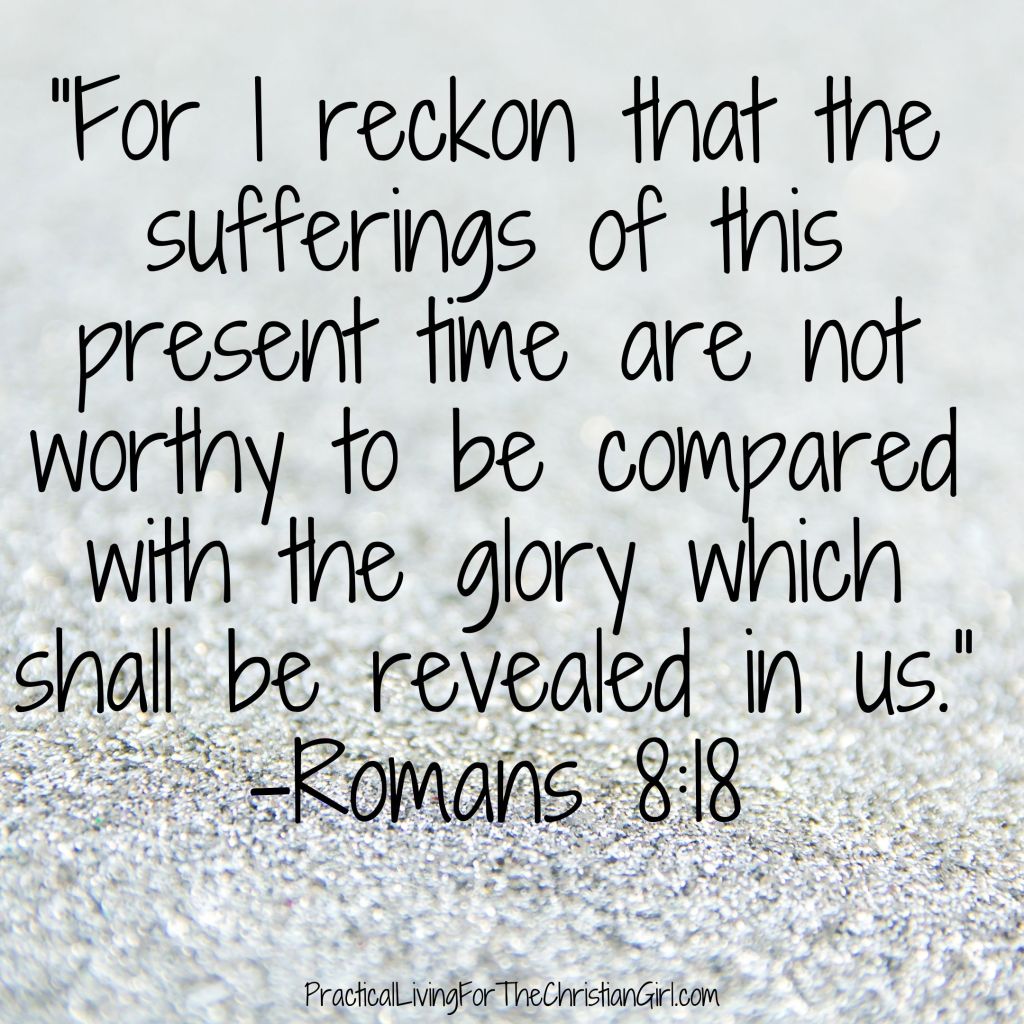 “For I reckon that the sufferings of this present time are not worthy to be compared with the glory which shall be revealed in us.”