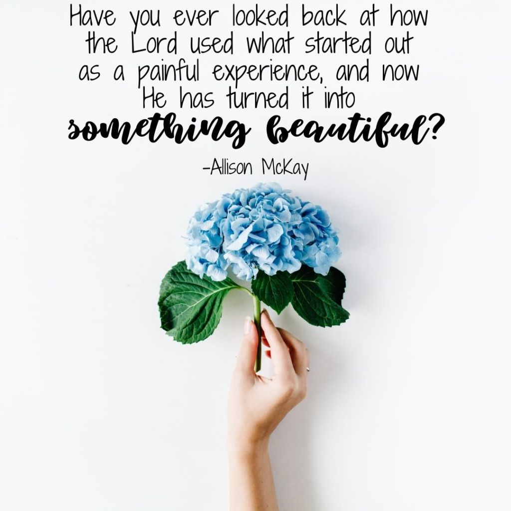 Have you ever looked back at how the Lord used what started out as a painful experience, and now He has turned it into something beautiful?