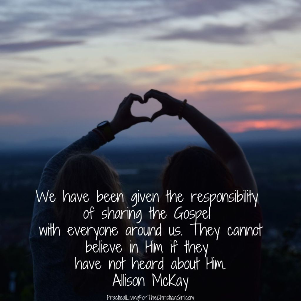 We have been given the responsibility of sharing the Gospel with everyone around us. They cannot believe in Him if they have not heard about Him.